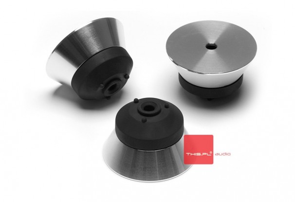 Zestaw 3szt. oryginalnych, dwuczęściowych (aluminiowo-gumowych) stóp gramofonowych stosowanych w gramofonach RP6. Propozycja upgrade'u modelu RP1, RP3 oraz starszych modeli gramofonów Rega.