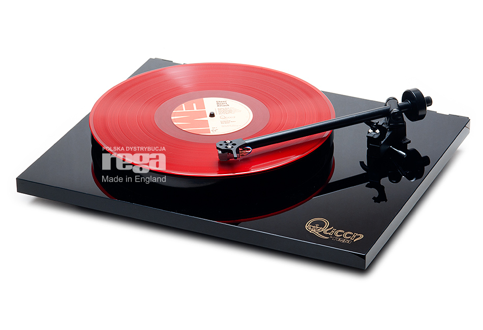 Gramofon został oparty na wielokrotnie nagradzanym modelu Rega RP1. W odróżnieniu od modelu RP1, wersja okolicznościowa została zbudowana na laminowanej akrylem plincie z logo Queen by Rega, wyposażona w synchroniczny 24V silnik o niskich wibracjach stosowany w droższych modelach oraz talerz z żywicy fenolowej z zaprojektowanym przez Freddy'ego Mercury'ego logo zespołu Queen. Dodatkowo standardowe logo Regi na pokrywie zostało zastąpione okolicznościową plakietką.